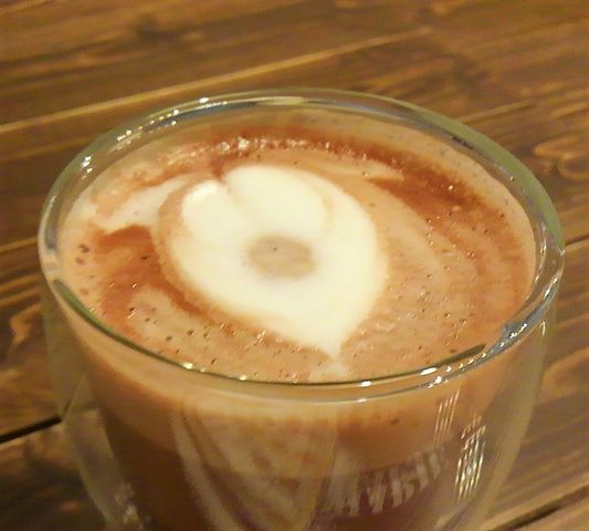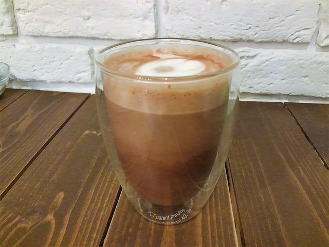 ホットチョコはボダムのグラスで。