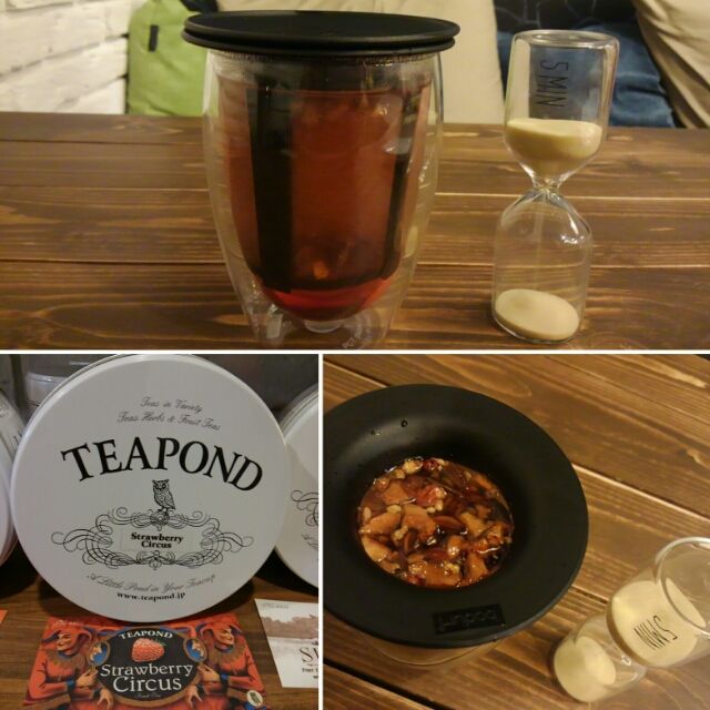 フルーツティはこのようにして、ストレーナーつきグラスにて。