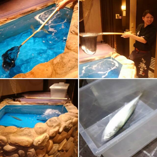 入口にある生簀で泳ぐイキのいい豊後サバ。