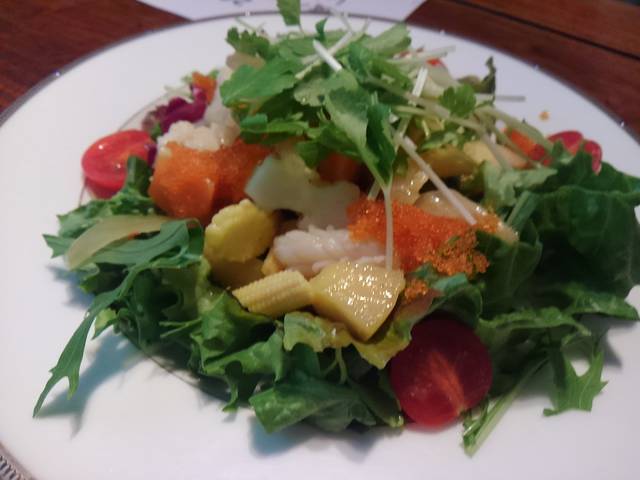 林檎と松笠イカのスパイシーサラダ