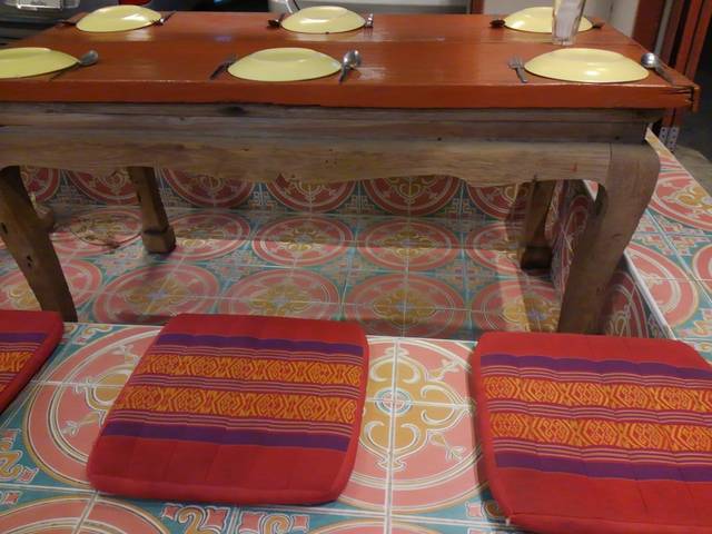 中庭にも座卓。