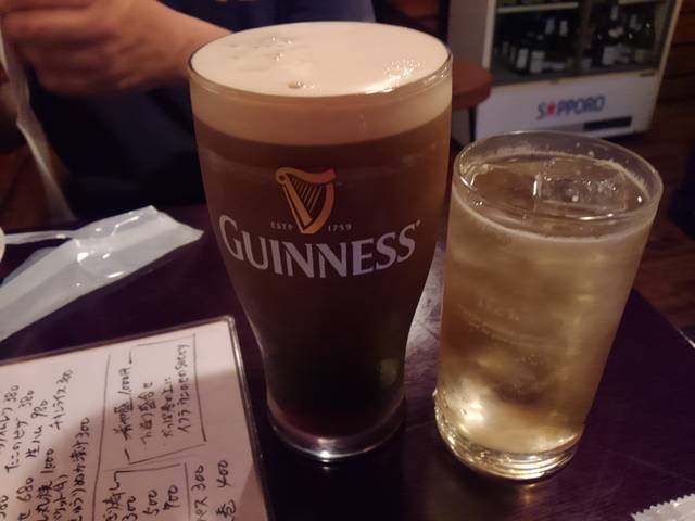 私はハイボール、友達は黒ビール。