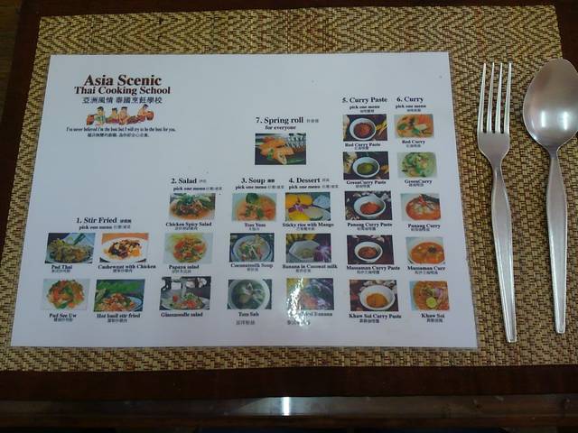 メニューは、炒め物・サラダ・スープ・デザート・カレーペースト・カレー・揚げ春巻きの7つ。