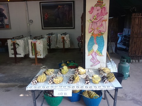 エサのサトウキビの枝とバナナが40THB(¥130くらい)。
