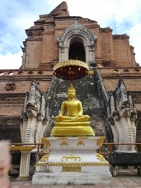 1391年、メンラーイ王朝第7代セーンムアンマー王(1383~1402年)が、亡くなった父を偲んで建立したと伝えられる、チェンマイで最も大きな(ルアン)仏塔(チェディ)のある寺院。