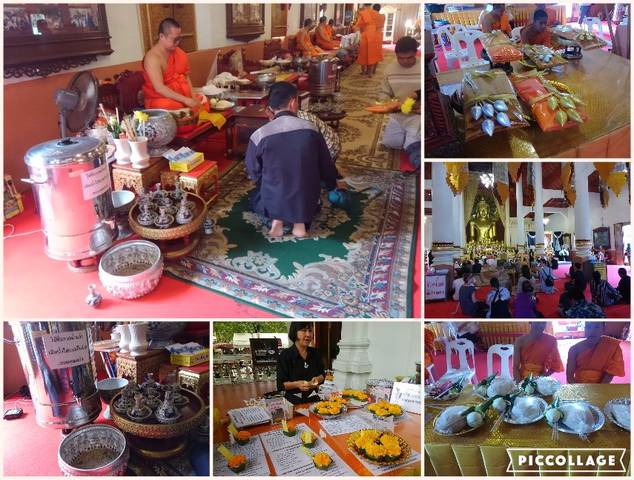 聖水をけっこうたくさんかけられ、厄除けの白い紐(サーイシン)を右手首に結んでくれます。