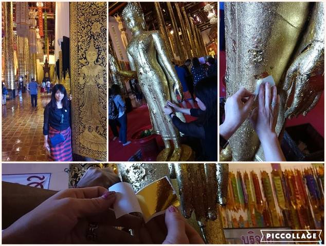 5センチ四方ぐらいの金箔を、仏像に貼りました。