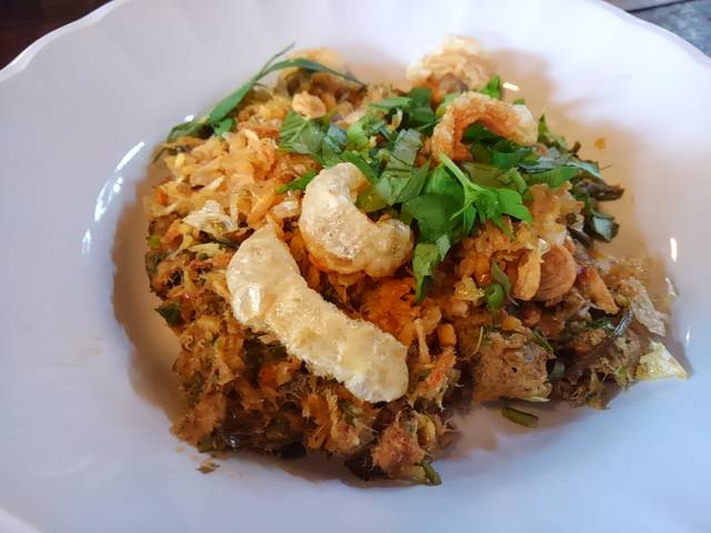 シーチキンを炒めたみたいな食感。パクチー入り 。