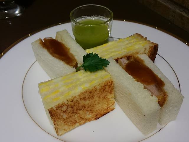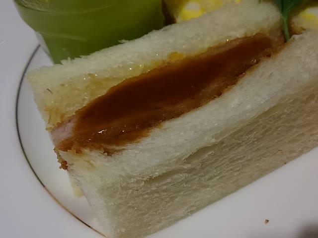 パンはトーストしていなくて、カツの薄い衣が引き立つ。