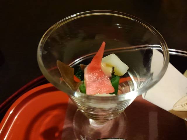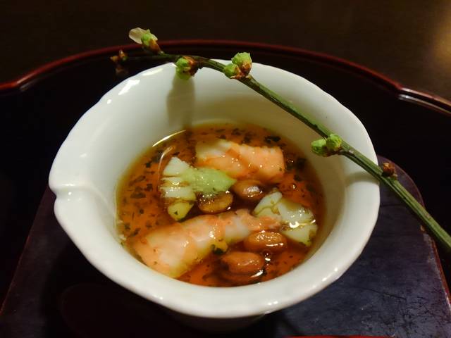 北浜のビル地下、数寄屋造りの京料理やさんで懐石。
