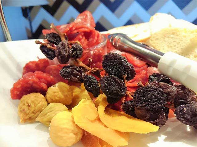 生ハムなどのシャルキュトリーやドライフルーツと!