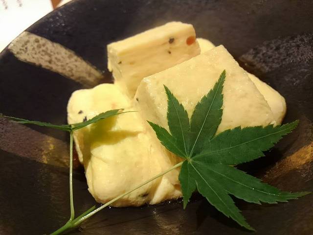 京都の湯葉たっぷり、北海道の美味しい雲丹、蕎麦の実のカリカリ。