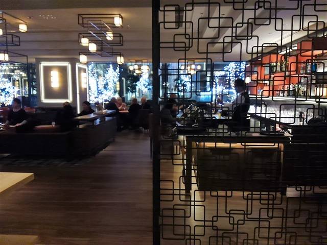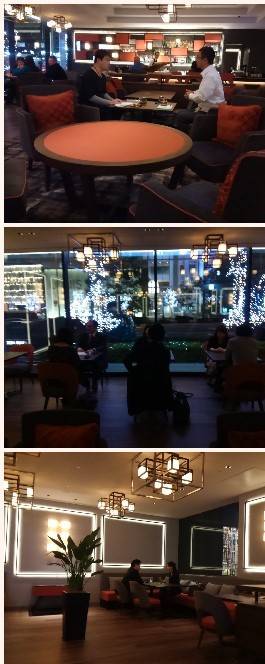 ヒルトンの新しいカフェで夜お茶。