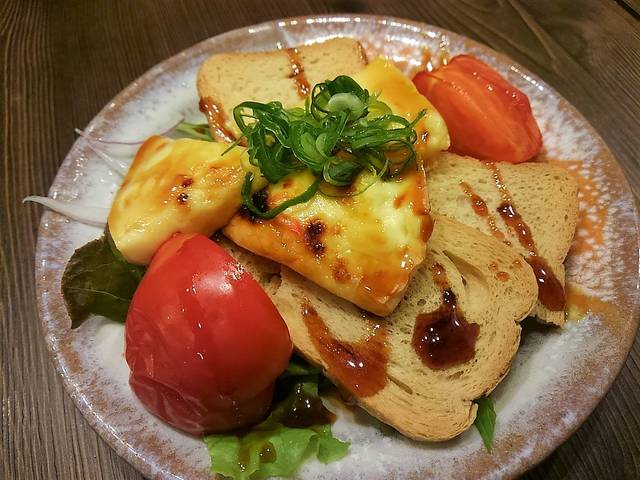 炙ったチーズに照焼のたれ。