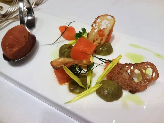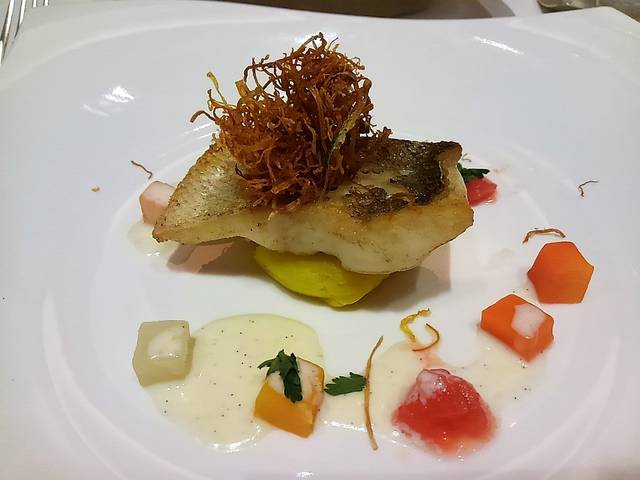 牛蒡のパリパリに揚げたものが食感と香りをプラスして、単調な白身魚を盛り上げる。