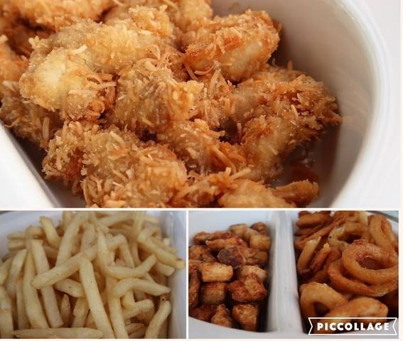 ココナッツをまぶしてあげた衣がサクサク!めちゃ美味しいー♪スイートチリソースで。