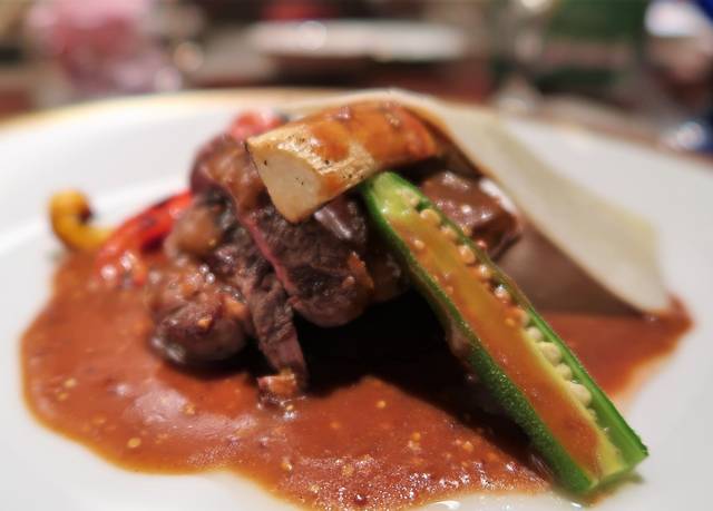 ◆ニュージーランド産牧草牛フィレ肉のタリアータ ペコリーノ・ロマーノ添え 粒マスタードソース