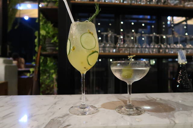 スプリッツァー、白ワイン、ライチリキュール、ビターオレンジ、パッションフルーツ、ローズマリー。