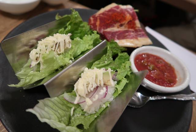 タコスっぽくレタスなどで包んで食べるっていうこと。