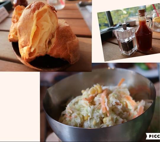 ポップオーバーに、サラダやお肉を入れて食べたよ。