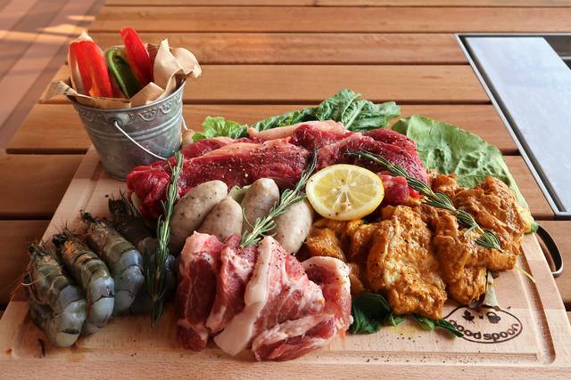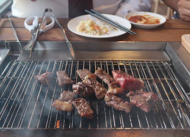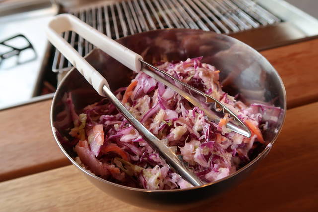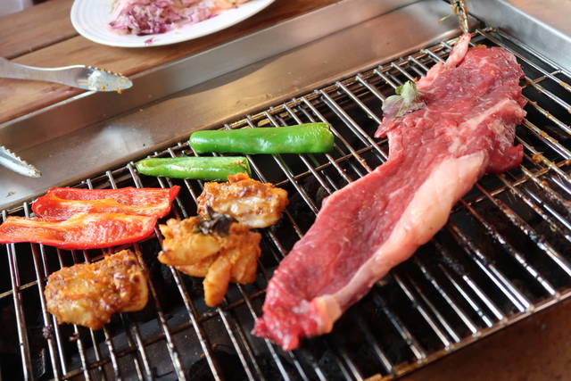 お肉の下味で十分美味しいけど、BBQソースと塩胡椒もスタンバイ。