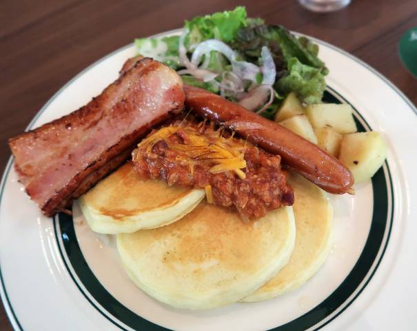 ◆チリビーンズのパンケーキ+ベーコン