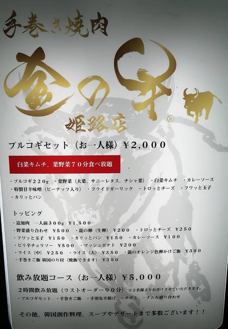 「手巻き焼肉 金の牛 姫路店」