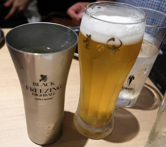 お店のロゴ入りビールと氷結ハイボールで乾杯☆