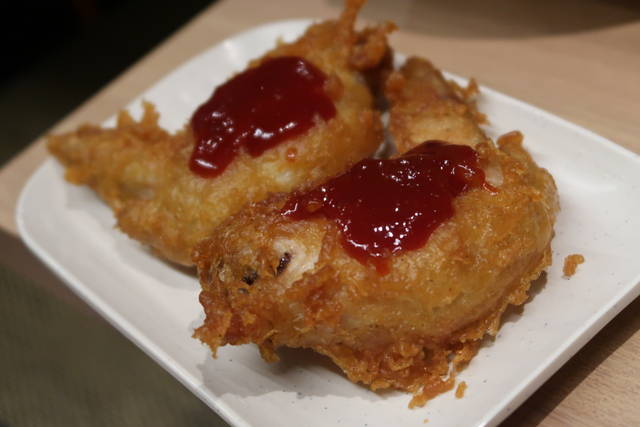 唐揚げじゃなく辛揚げとあるがごとく、ケチャソースがピリ辛☆