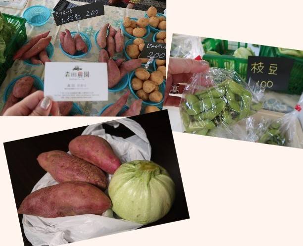 森田農園さんで、さつまいも¥200。ズッキーニおまけ!
