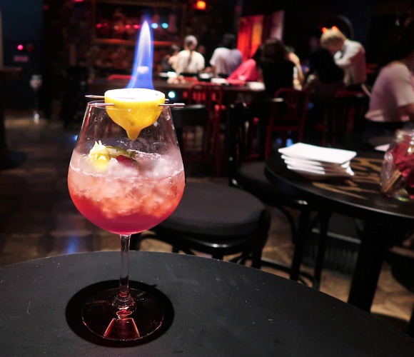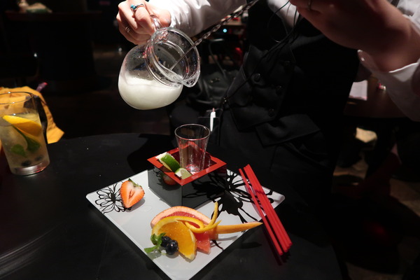 半分にくりぬかれたレモンの中にお酒が入っていて、青白く上がる炎は幻想的〜♡
