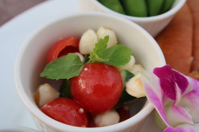 トマトとモッツァレラとミントガーリックキャラメリゼのサマーサラダ。