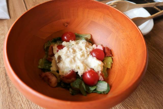 焼きロメインレタスのシーザーサラダ 半熟たまごを絡めて ¥950