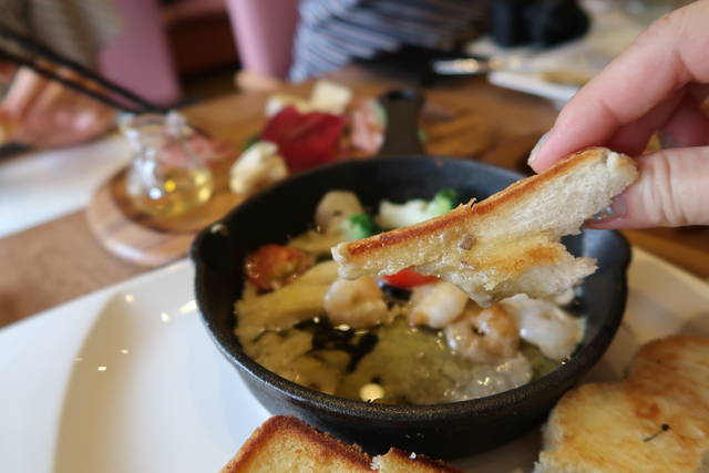 このアメリケーヌソースがあまりにもおいしいので、ガーリックトーストをオーダー。
