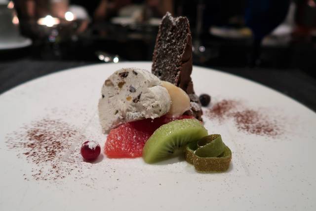 リコッタチーズで作ったカッサータ(アイス)はミルキーで、シャキっとした感じが少しあって、ナッツとドライフルーツがじわじわ美味しい。