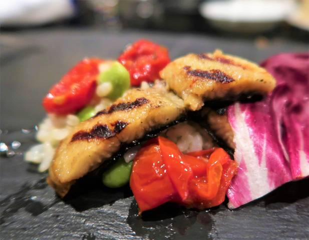 静岡産鰻のグリル 枝豆とゴルゴンゾーラのリゾット添え