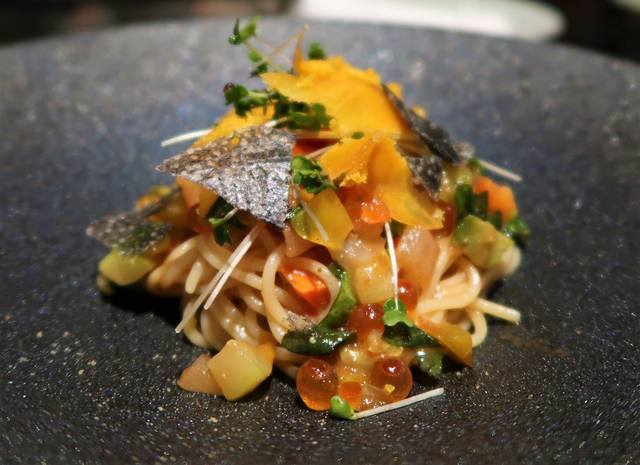 夏野菜と魚卵の冷製パスタ