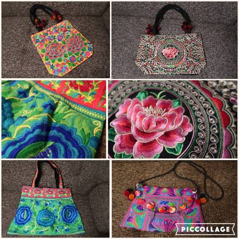 少数民族村で手作りのきれいなバッグとアクセ。