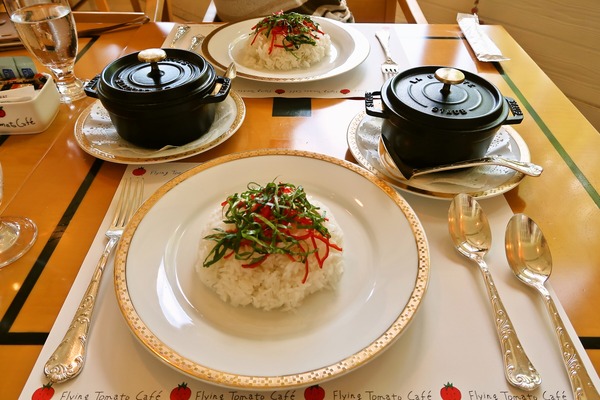 チキンライスにふわふわのホテルスクランブルエッグ。