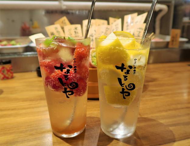 なるとや特製 ごろごろチューハイ いちご¥650とレモン¥600