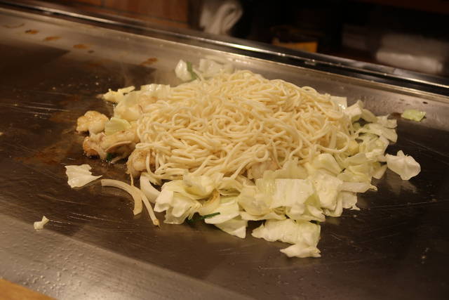 鉄板の前のL字カウンターと、奥に個室、テーブル席。