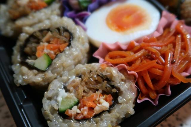 ばらけず食べやすい。寒天でも入れているのかしら??