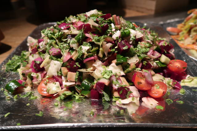 タンドリー焼きのチキンと野菜を和えたサラダ。