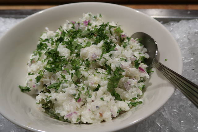 きゅうりやミントなどをヨーグルトで和えたもの。