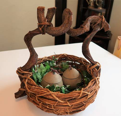 太いぶどうのツルを使ったカゴでやってきたのは、
