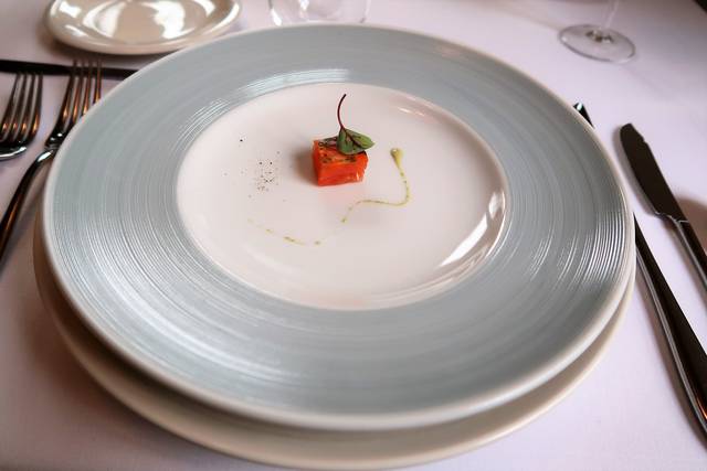信州のマスと人参のミルフィーユ仕立て。