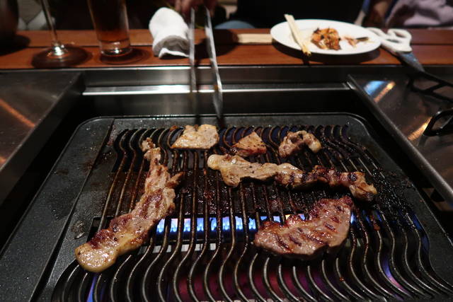 大き目お肉を焼いてから、はさみで切るスタイル。BBQ感あるー♪