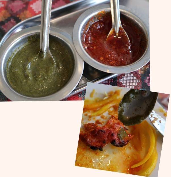 ミントソースと唐辛子ソース。