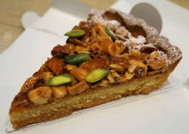 タルトは台紙にジャムで貼り付けられていて動かないようになっていました。杏子のナパージュかな?