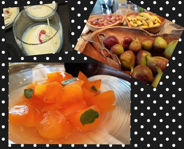 ホワイトチョコレートとチーズのムース、柿とアニスのコンポート